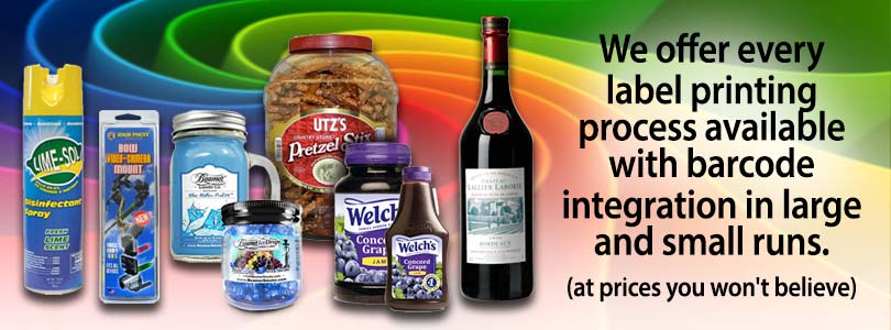 Some of our customers require millions of label per year. Keeping this in mind we created a 3 color (not full color) label that can be printed on rolls using a Flexographic printing process. The cost per label comes out to tenths of a penny. Other customers need one thousand each of 20 different lots. New digital printing processes allow for photographic quality images that have custom die-cut shapes. Custom shrink sleeves for cans or plastic bottles are also an economical answer for large quantities.