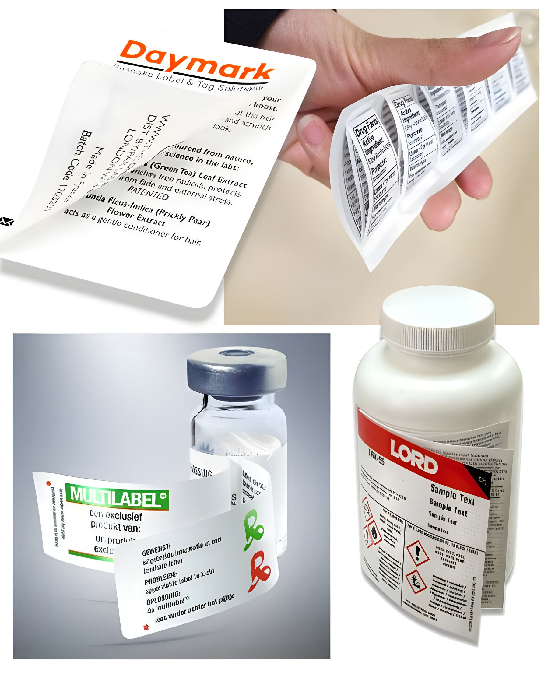 - Booklet or pamphlet laminated (or glued), Multi-layer labels.