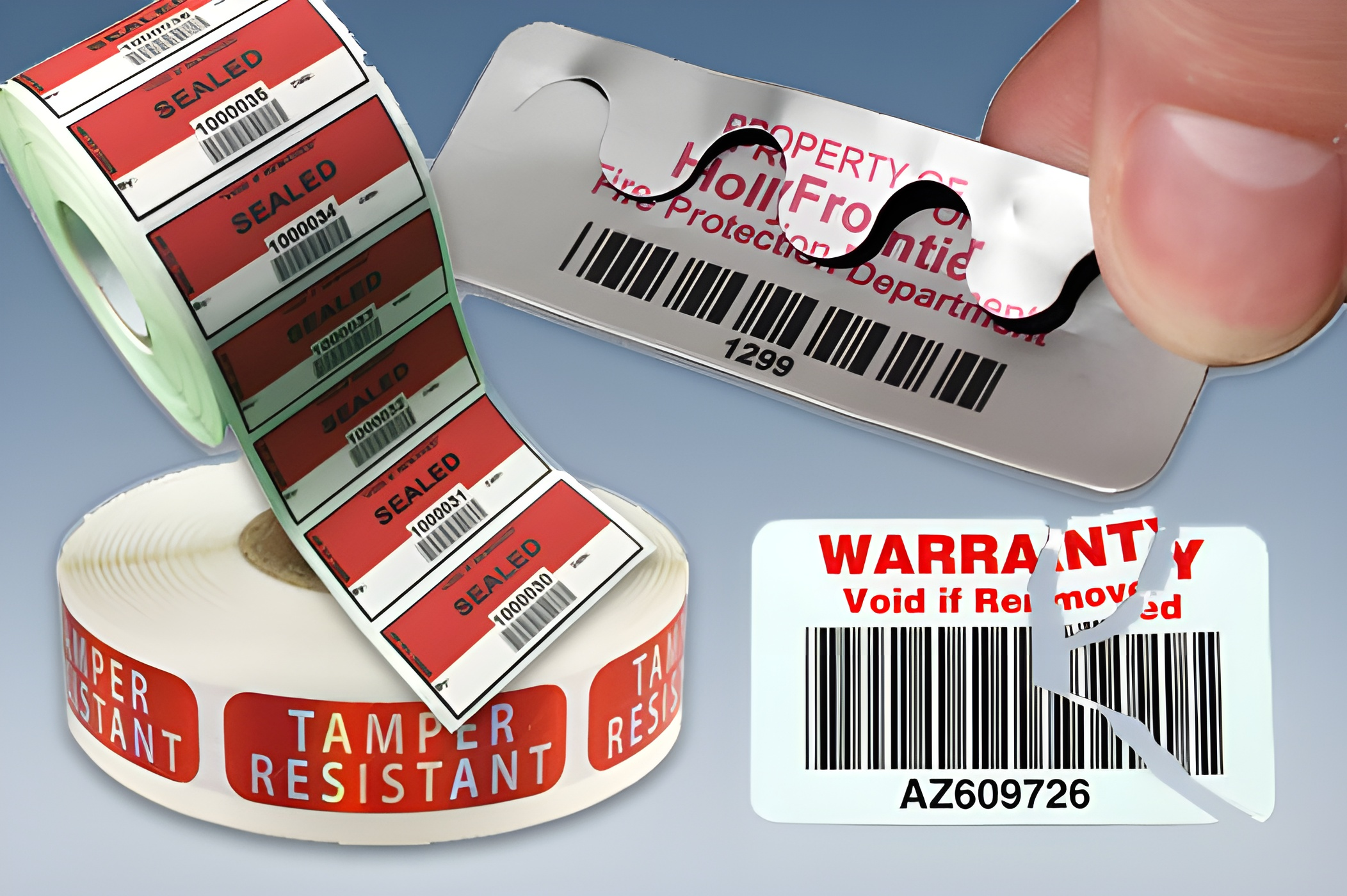 Protecting valuable assets of any kind can be accomplished by using a variety of Tamper Evident labels. Tamper evident labels are designed to show if anyone has tried to open or access the product or material without permission. Some features include VOID Security labels, that have text appearing upon removal, Destructive labels that shred to pieces, split center that break through printed text, holographic security features and more. These labels can be customized with sequential barcodes or numbers in a wide variety of sizes and materials.