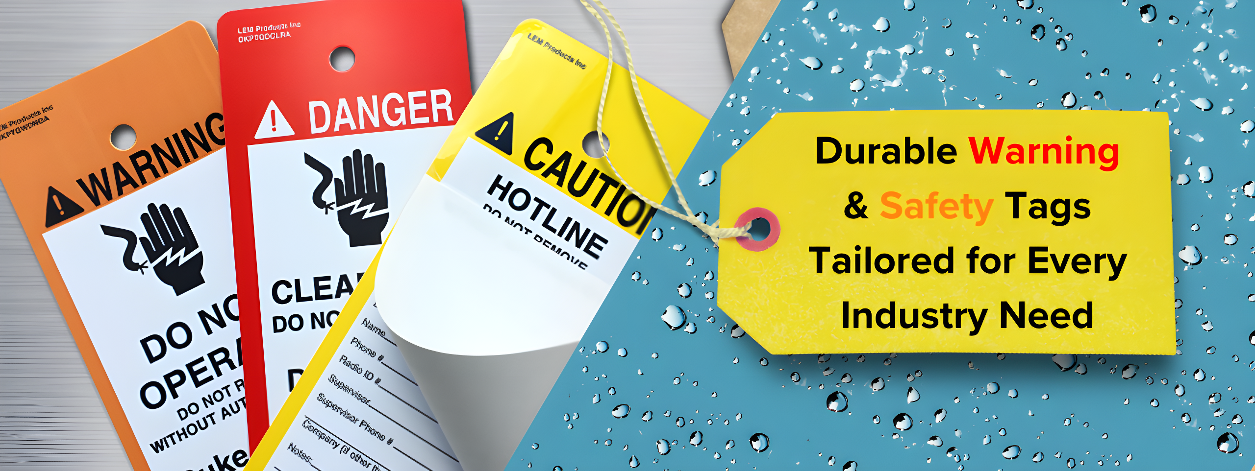 Our Warning and Safety Tags are manufactured to meet compliance requirements. We offer stock and custom durable warning tags and labels at an affordable price. Our products meet any application indoors or outdoors, to convey messages regarding Voltage, Hot Surfaces, Lockout, Safety Equipment Requirements and Health Hazards.