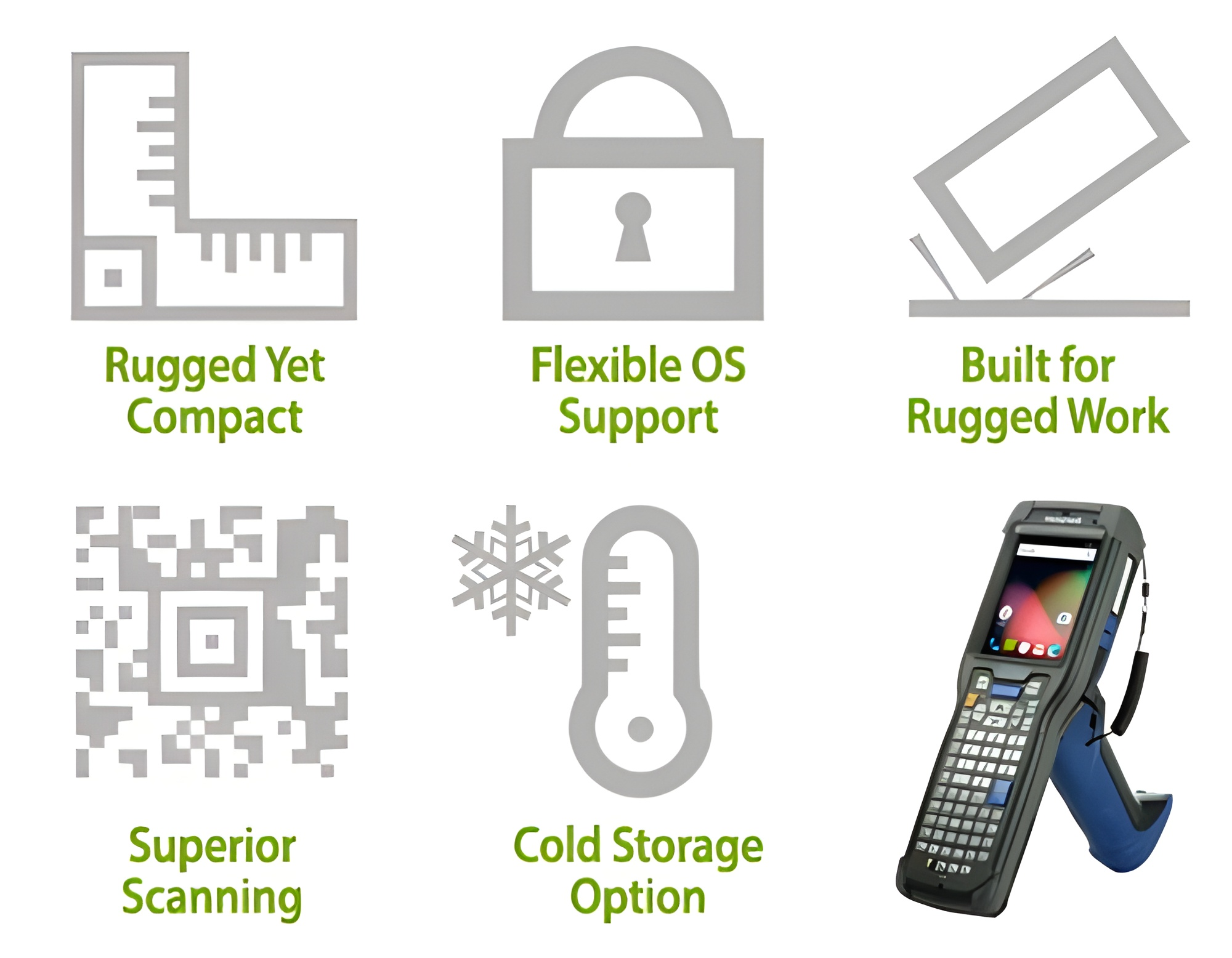 Flexible Operating System Support- Supports Windows Embedded Handheld 6.5 and Android 6.0 Marshmallow operating systems for flexible application support and migration.