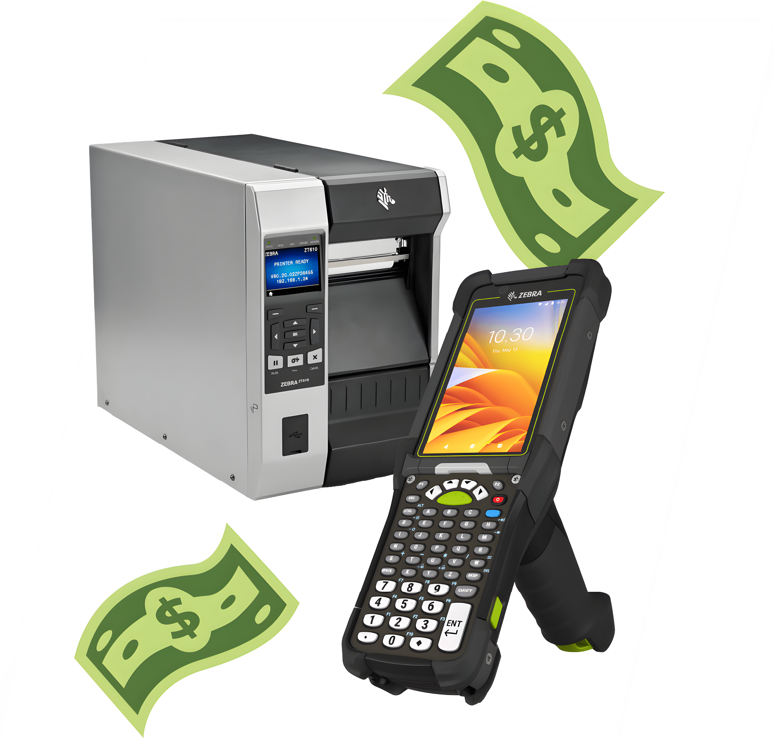Get even faster ROI! Replace your outdated RFID devices and get cash back when you purchase new Zebra devices from Barcode Factory. With GO Zebra, even non-Zebra trade-in models earn cash back.