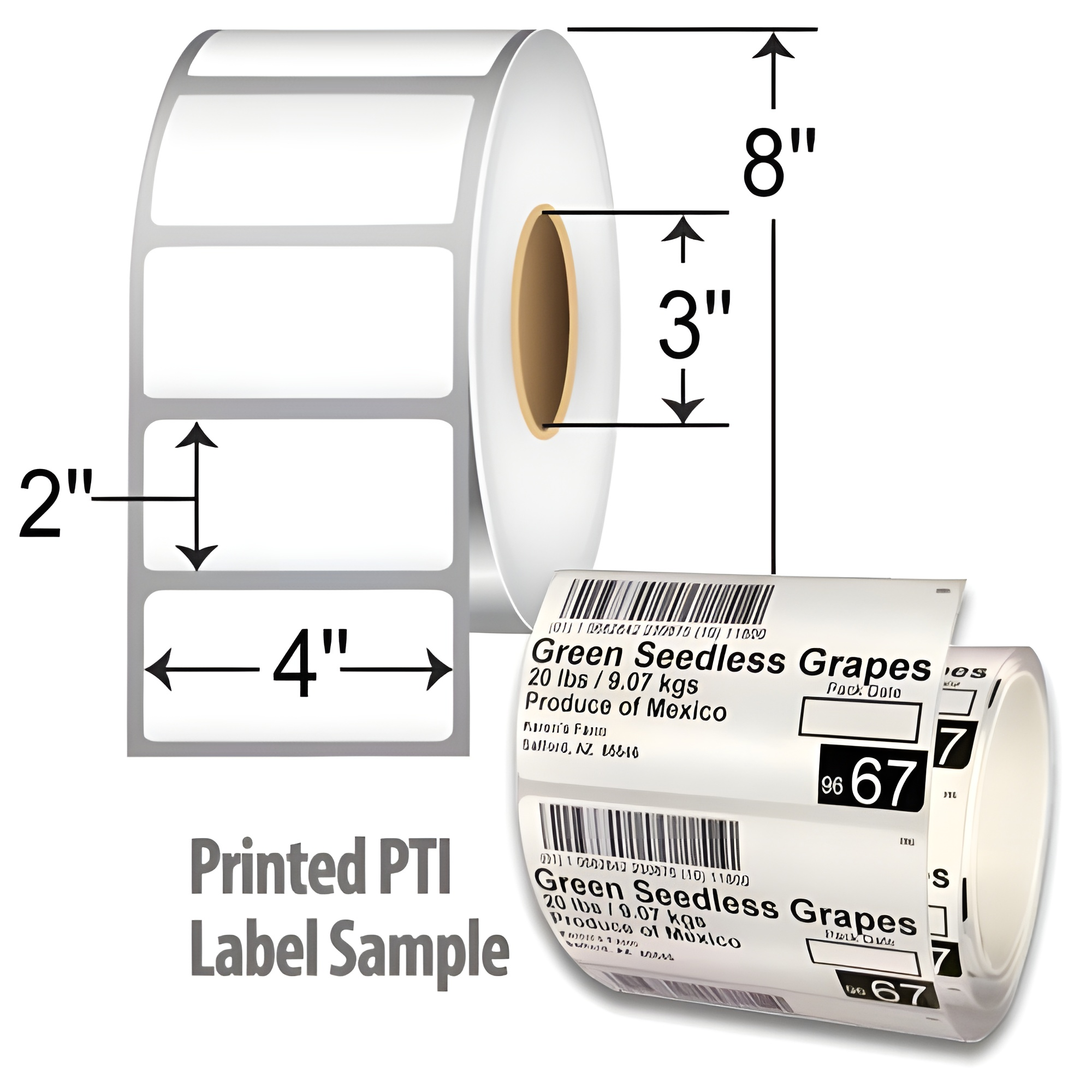 - Cardboard or disposable case level PTI labels use a standard adhesive and are generally also 4" x 2"