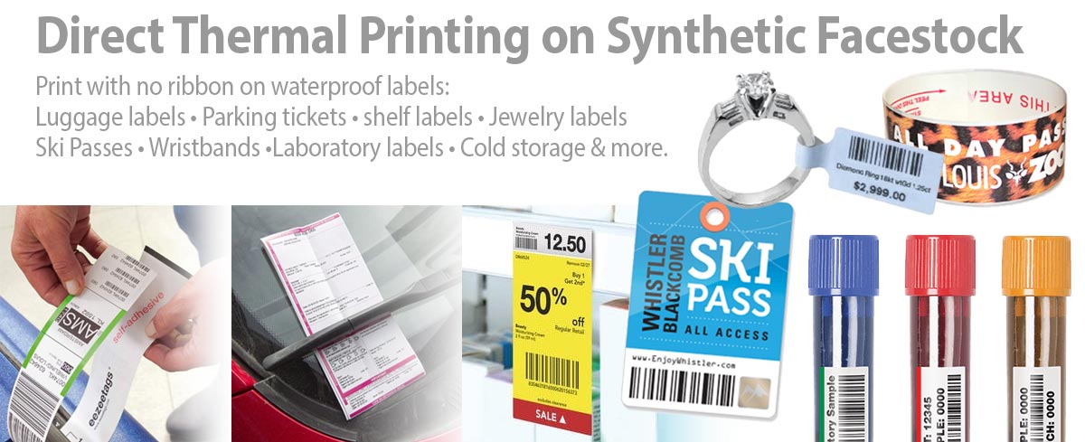 See How special top coatings on durable synthetic stock enables crisp dark and clear imaging on highly durable labels. Barcode Factory carries a full line of highly durable Polyester, Polypropylene, and Vinyl direct thermal labels in a variety of sizes and colors. Purchase your synthetic labels in rolls or by the case and save with quantity discounts!