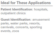 The wristband cartridges are available in a wide variety of wristband sizes and colors and feature a waterproof adhesive, making the HC100 an ideal solution for amusement and water park guest identification. With faster print speeds, wait lines at the point of entrance are reduced, improving the customer experience and staff productivity.