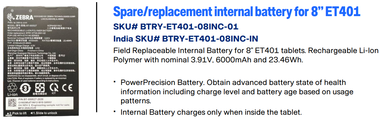 Zebra ET401 Removable Battery [8-Inch]