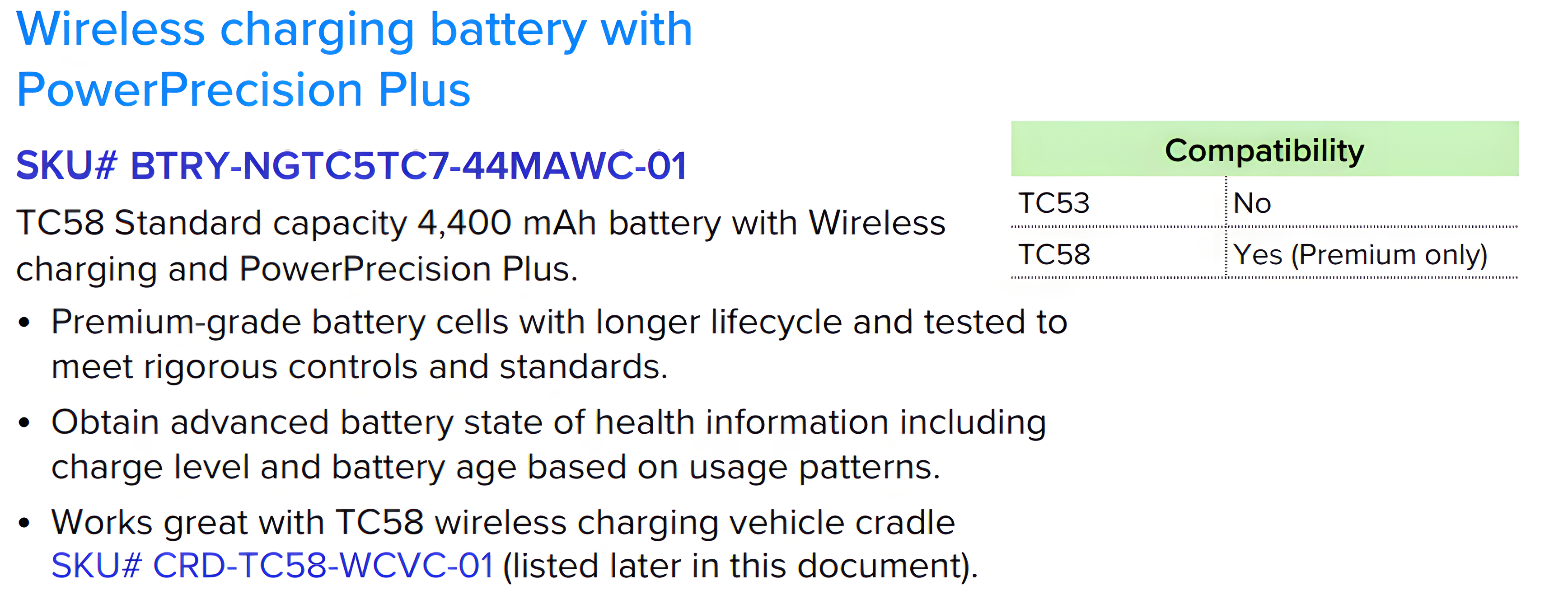 Zebra TC58/TC78 Only Wireless Charging Battery w/ PowerPrecision Plus