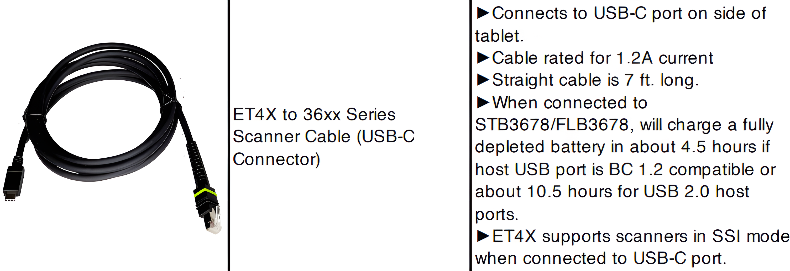 Zebra ET4X to 36xx Series Scanner Cable (USB-C Connector)