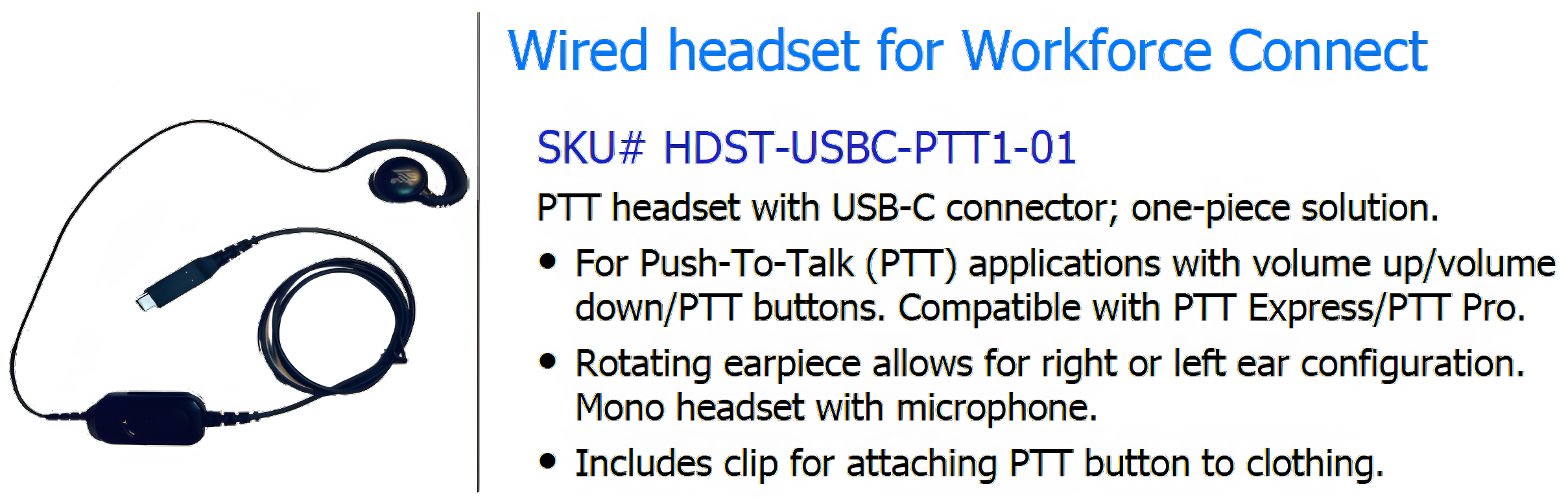 Zebra, USB-C Wired Headset for Ptt + Voip w/ Rotating Ear Piece for Right/Left Ear Wearing, Includes: Built-in Push-To-Talk (PTT) Button and Volume Controls
