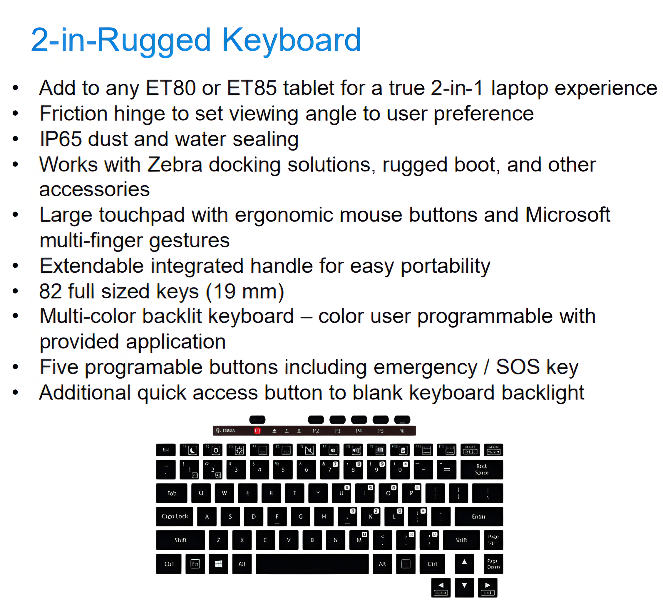 Zebra, ET8X 2 inch-1 Attachable Rugged 82 Key Keyboard With Muli-Color Backlight and 6 Additional Programable Keys. QWERTY US English.