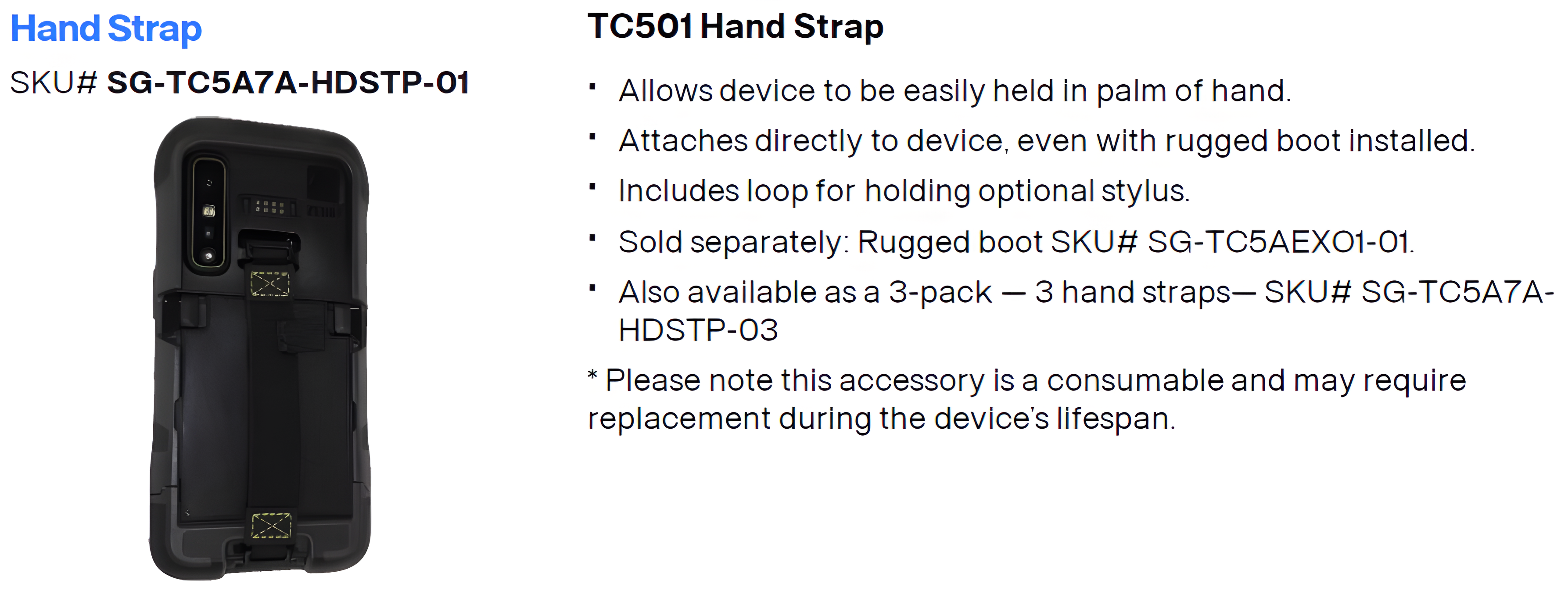 Zebra TC501; TC701 Hand Strap, Can Attach Directly to a Device or an ExoskeletonZebra Technologies Parts & Accessories