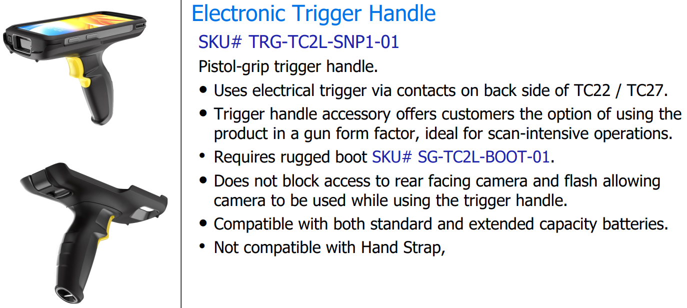 Zebra TC22/TC27 Trigger Handle, Supports Device With Either Basic or Extended Battery