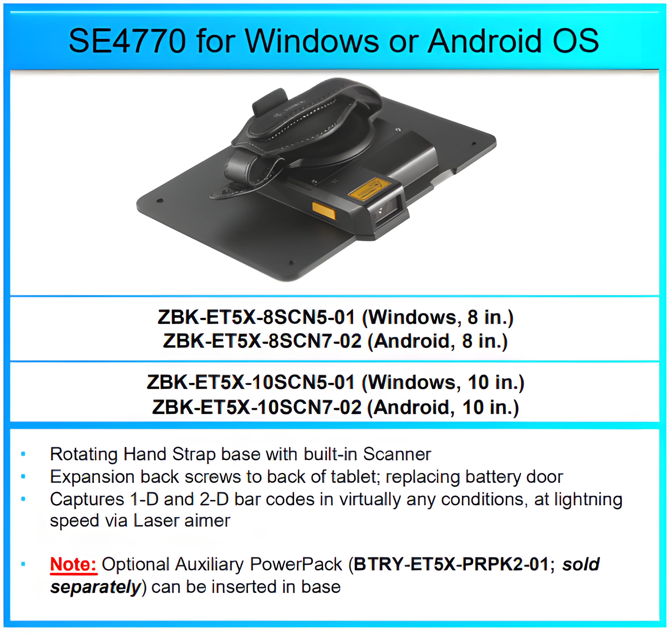 Zebra, ET5X 8 Android, 1D/2D Imager (SE4770) Expansion Back Accessory + Rotating Hand Strap, Optional Battery Sold Separately