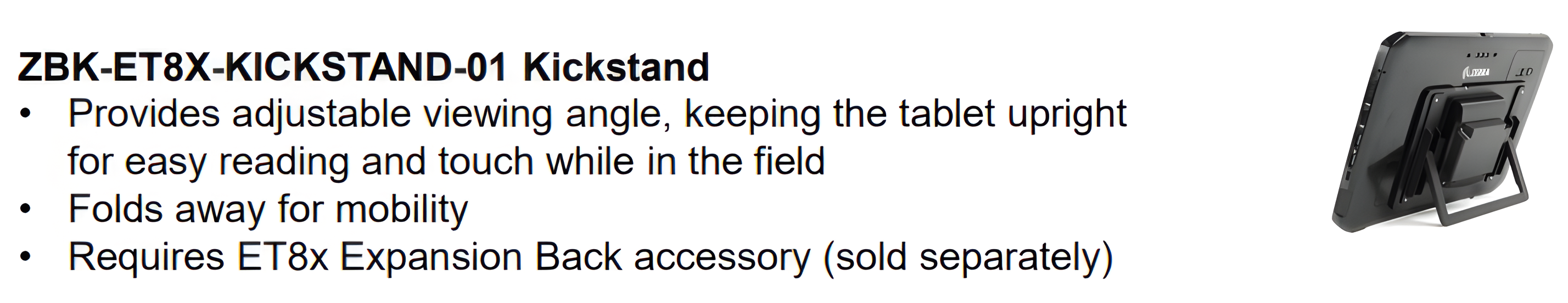 Zebra, ET8X Kickstand for Expansion Back Accessory, Requires ET8x Expansion Back accessory (sold separately)