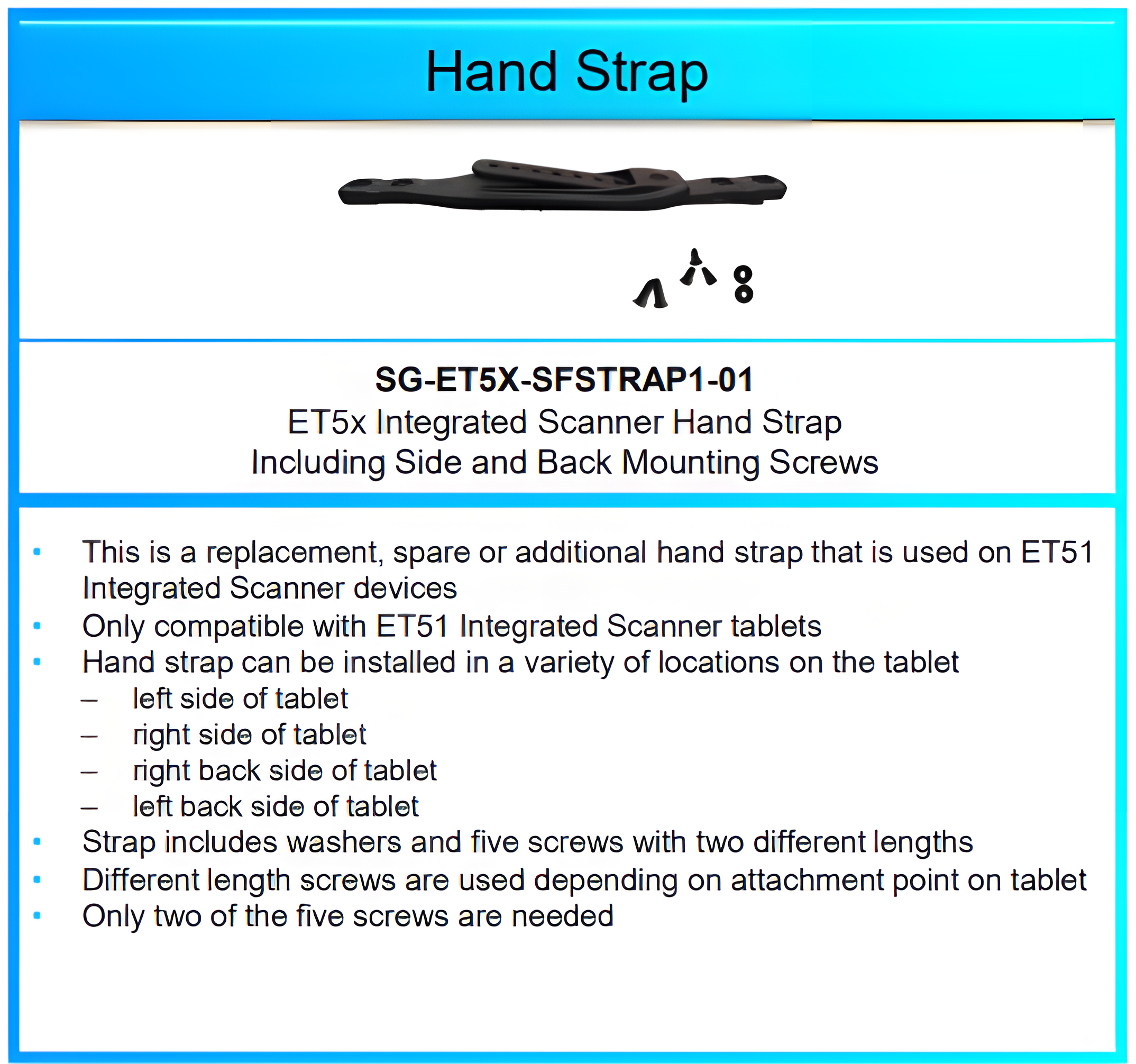 Zebra ET5X Integrated Scanner Hand Strap [Includes Screws]